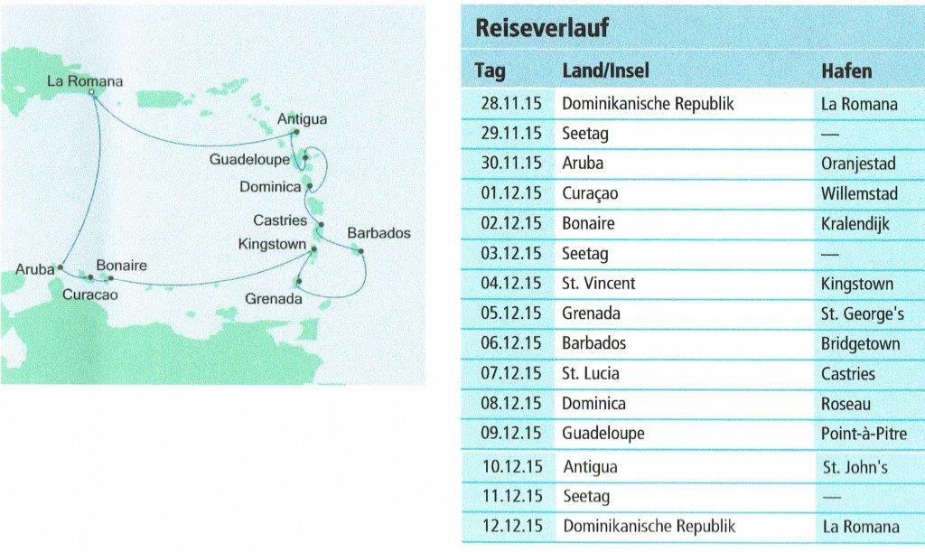 Der erste Teil der Reise bestand aus einer 14-tägigen AIDA-Karibik-Kreuzfahrt mit der Aida Diva.