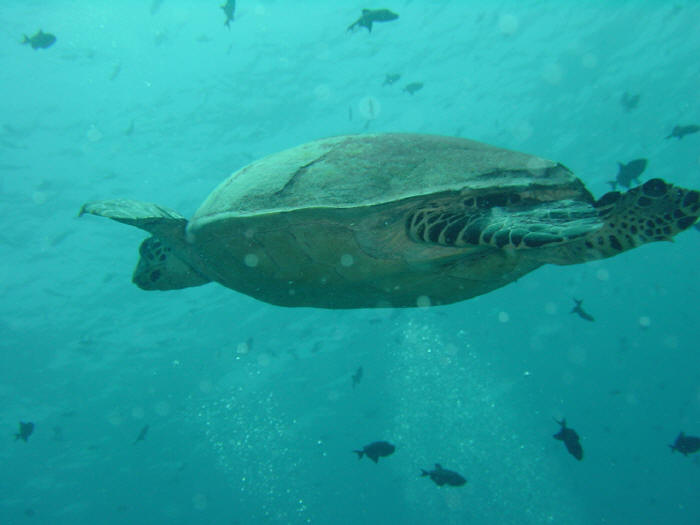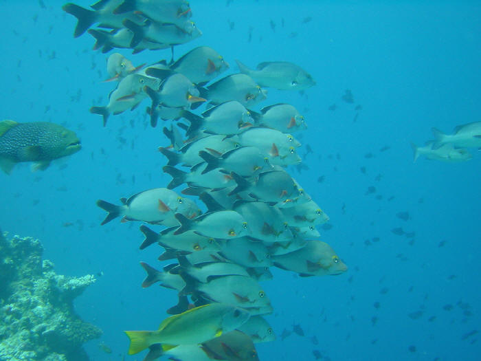 Wir haben beides getan und dabei festgestellt, dass das vorgelagerte Riff ein wahres Schnorchelparadies ist. Dort ist alles zu sehen, was sich ein Schnorchler so wünscht. Wir haben hier Schildkröten gestreichelt, welche zum Luftholen auftauchten, Haie gesehen sowie große Moränen, Schwarmfische, Rotfeuerfische, Doktor - , Kugel - , Kofferfische und Oktopusse. Am vorletzten Tag unseres Urlaubes schwammen etwa 20 Delfine unmittelbar vor unserem Strand vorbei.